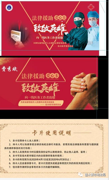 市司法局副局长秦鹏飞、市律师协会会长高云超代表全市律师向援鄂111名医护人员赠予了法律援助爱心卡,并表达了佳木斯市律师对援鄂医护人员最诚挚的问候和敬意。4月1日至6月30日期间,援鄂医护人员如有法律服务需求可以持爱心卡前往佳木斯市各律师事务所。届时,各律师事务所及律师将为其提供免费法律咨询、代写法律文书或者协商减免案件代理费等服务。
